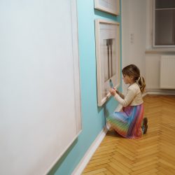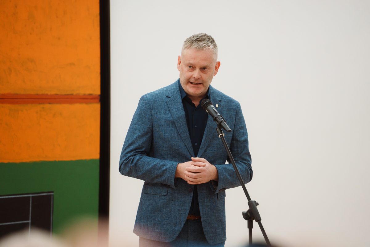 »Stene galerije so pobarvane v odtenke, sorodne tistim na delih in bodo poudarile (nevidno) barvno esenco dela. S čimer se ga dotikajo, a v resnici ne dosežejo.«