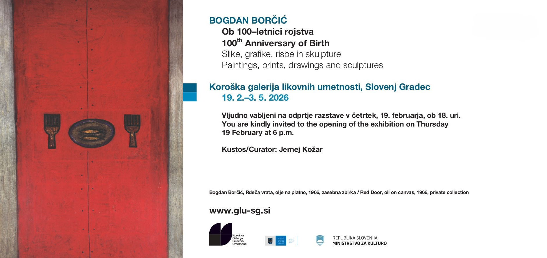 Koroška galerija likovnih umetnosti (KGLU) je ob stoletnici rojstva enega najpomembnejših slovenskih umetnikov druge polovice 20. stoletja pripravila razstavo Bogdan Borčić: Ob 100-letnici rojstva. Slike, grafike in skulpture. Razstava združuje ključna dela iz vseh obdobij njegovega ustvarjanja in ponuja celovit in interpretativno zaokrožen vpogled v njegov opus. Razstavo je v četrtek, 19. februarja, ob 18. uri odprla ministrica za kulturo RS, dr. Asta Vrečko.
