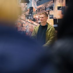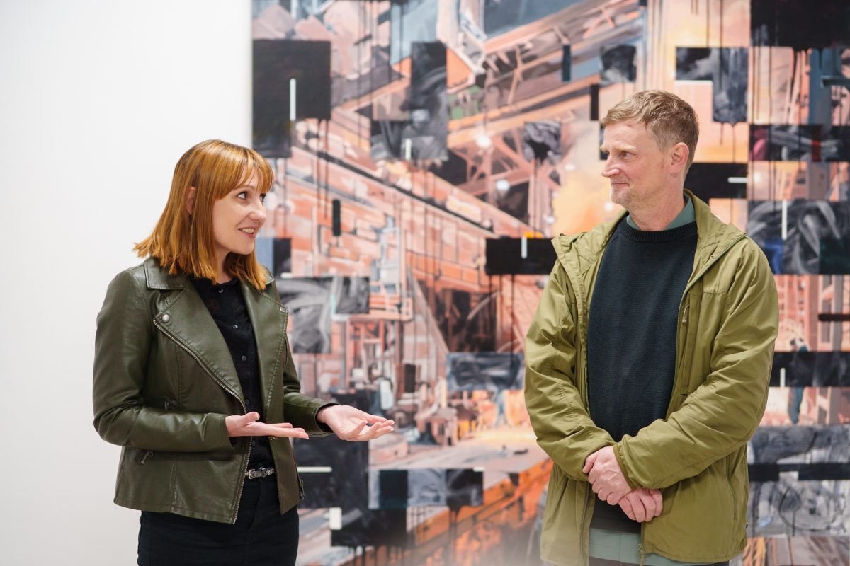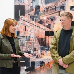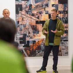 Razstava bo predstavila slike in risbe z motivi iz proizvodnje SIJ Metala Ravne, ustvarjene posebej za ta projekt. Velike in mračne proizvodne hale delujejo na obiskovalca nadrealistično in navdihujoče. Ostri kontrasti svetlobe in teme poudarjajo fotogeničnost industrijskih interierjev, ki spominjajo na prezrte periferne vedute, kakršne umetnik odkriva tudi na svojih potovanjih in jih prenese na platno. Posebno pozornost sta pritegnila jeklarna in kovačnica težkih odkovkov SIJ Metala Ravne.
