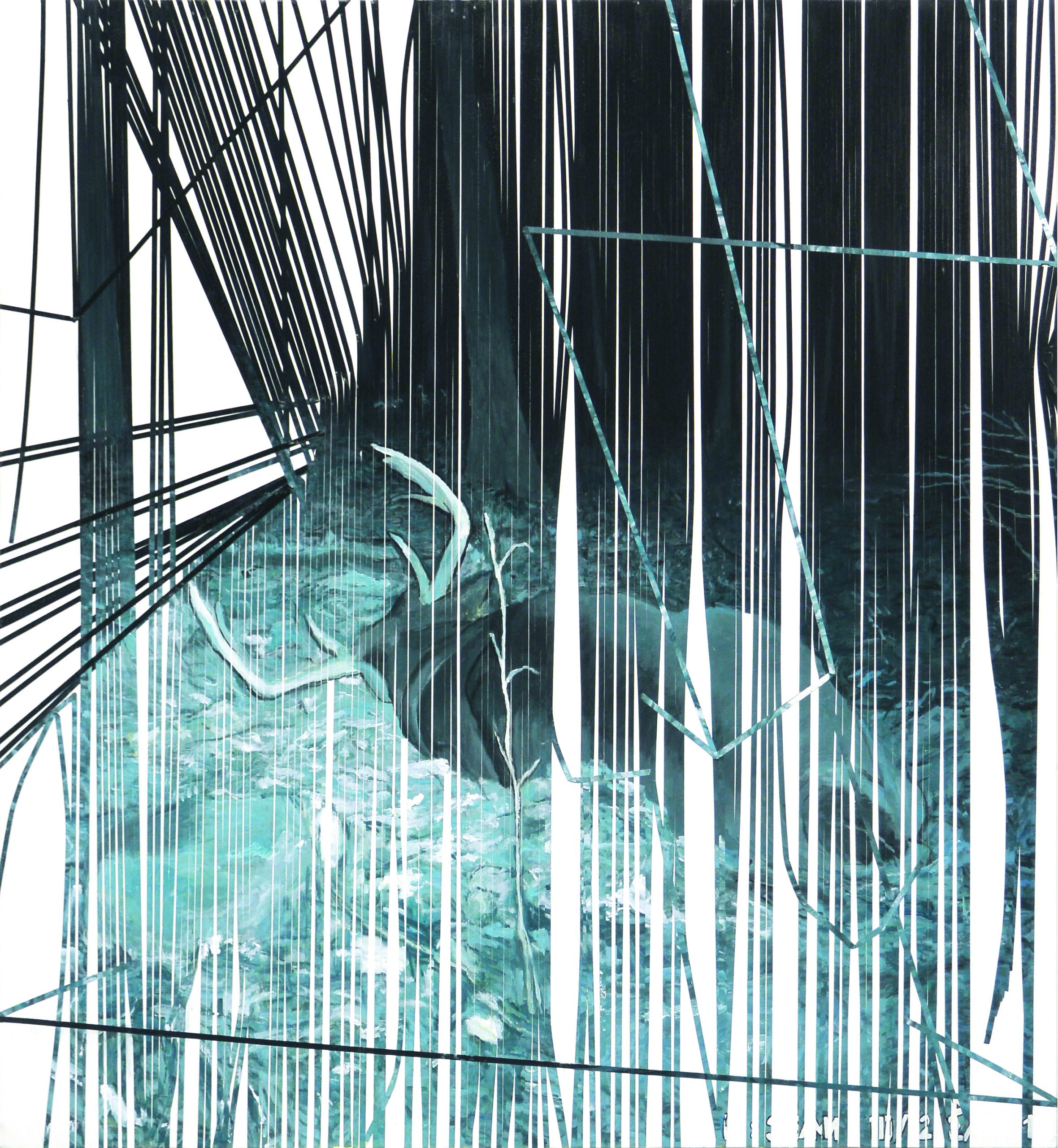 - Sašo Vrabič, Deep Sleep, 2017-18, paper cuts, acrylic, oil on canvas, 160 x 260 cm