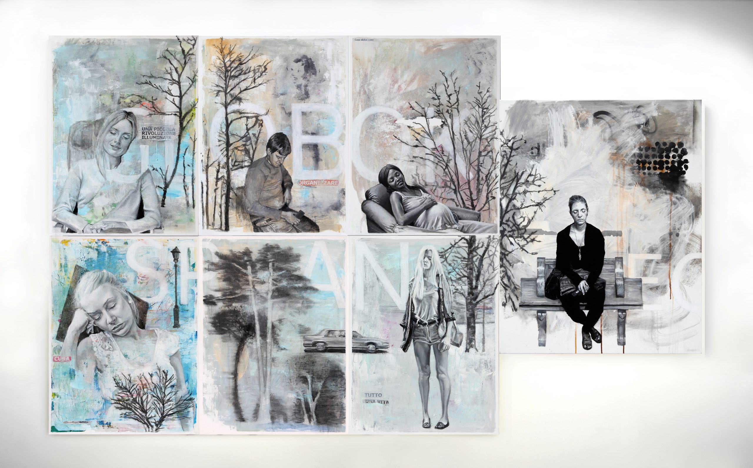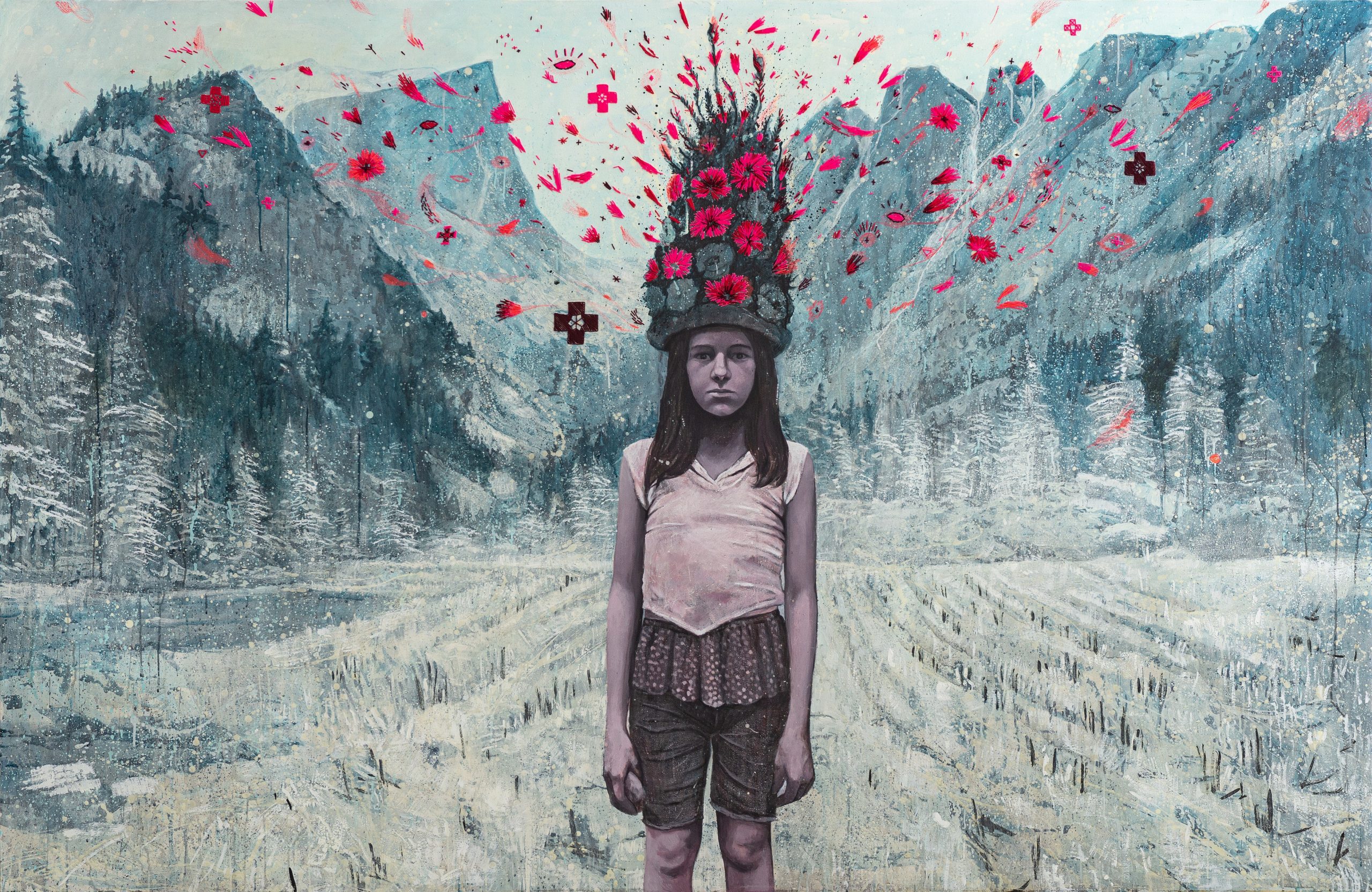 - Tina Dobrajc, That Winter at Home She had become an Invisible Girl, 2019, acrylic and mixed media on canvas, 270 x 180 cm